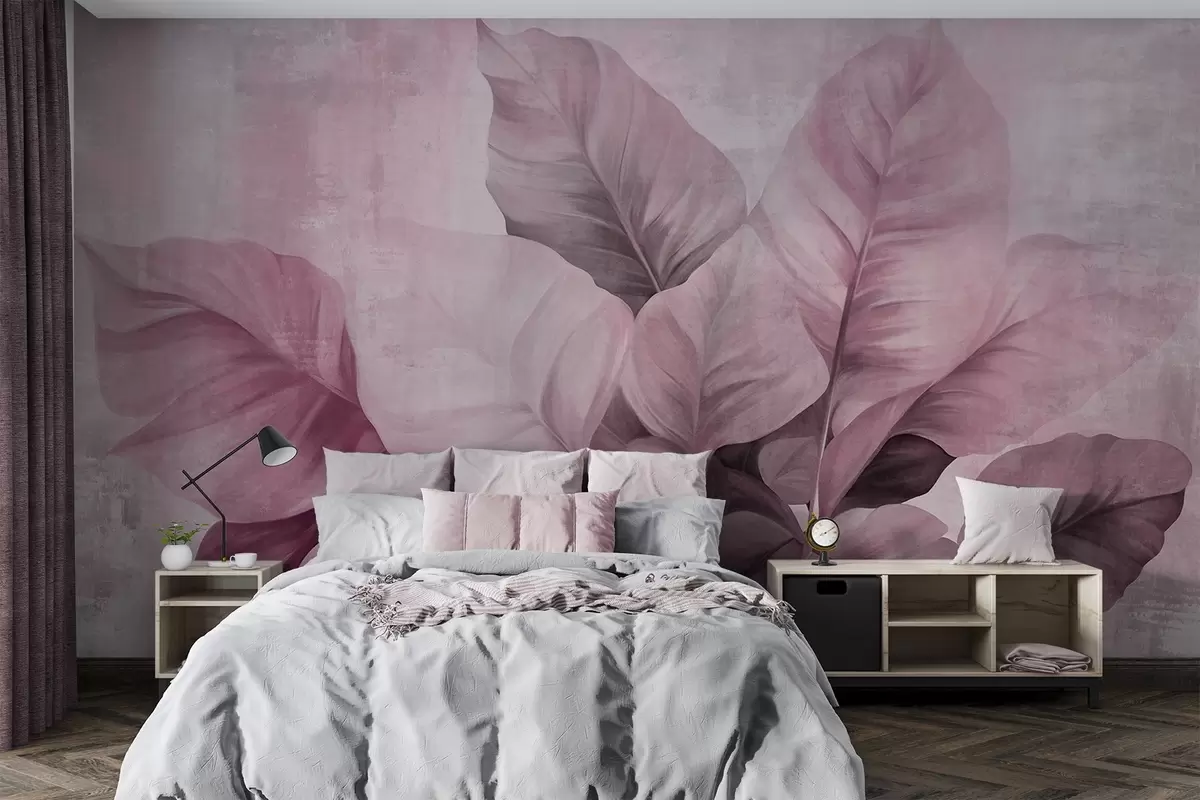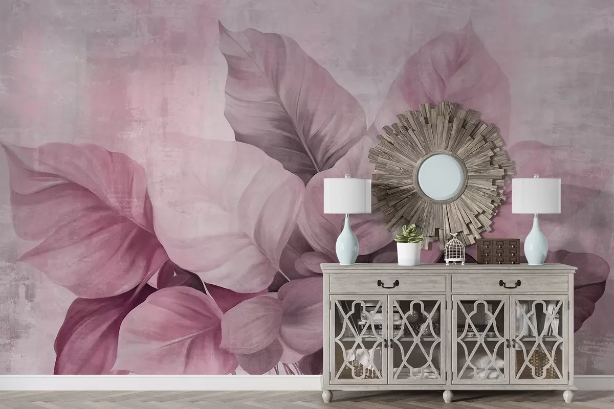 Fototapetai Tekstūruotas tapybos imitacija didelių, šviesiai rožinių lapų ant neutralios fono su subtiliais potėpiais Nr. w09614v1