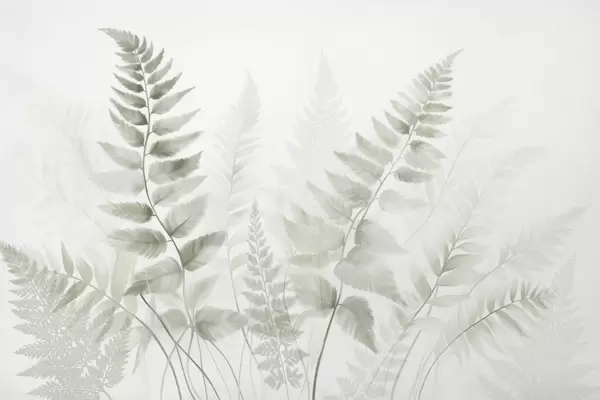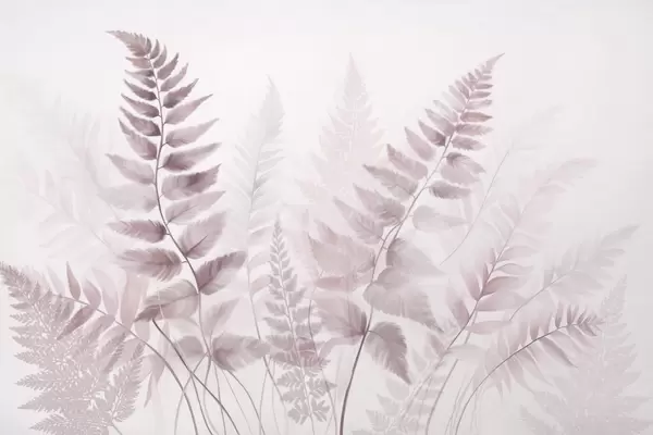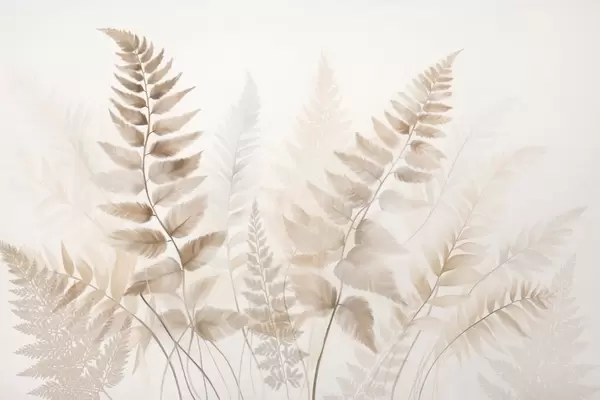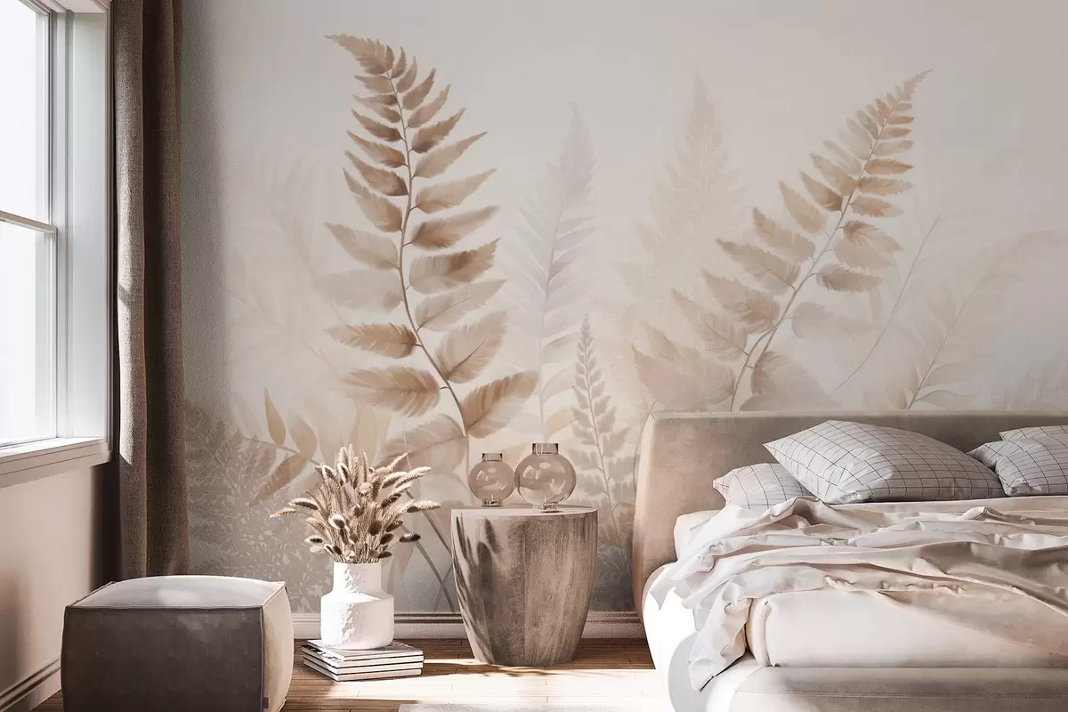 Fototapetai Tekstūruoti džiovinti paparčių lapai įvairių rudų atspalvių, su švelniu, šviesiu fonu akvarelės stiliumi. Nr. w09615