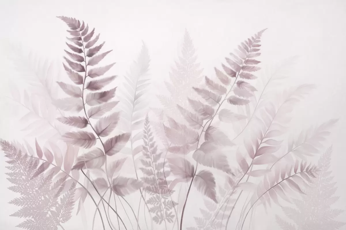 Fototapetai Tekstūruoti džiovinti paparčio lapai įvairių rožinių atspalvių, su švelniu, šviesiu fonu akvarelės stiliumi. Nr. w09615v2