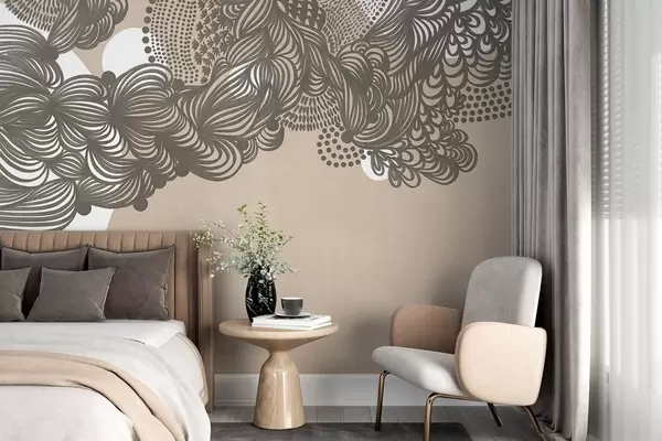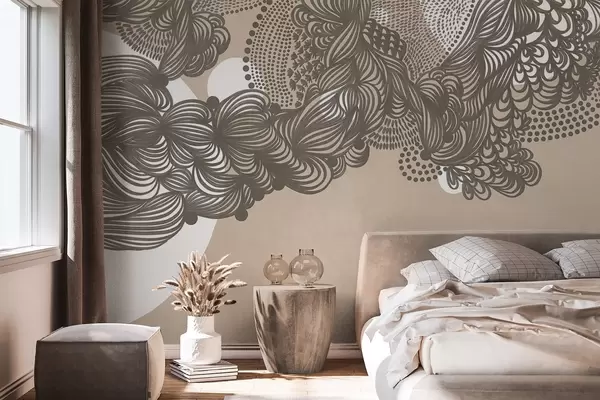 Fototapetai Abstraktus tekstūruotas dizainas ant smėlio spalvos fono, su sudėtingais linijų motyvais ir taškuotomis tekstūromis. Nr. w09621