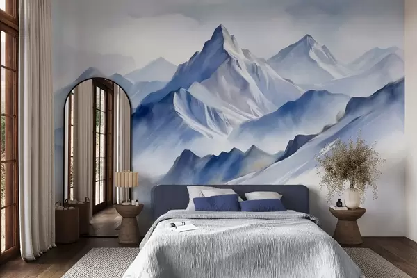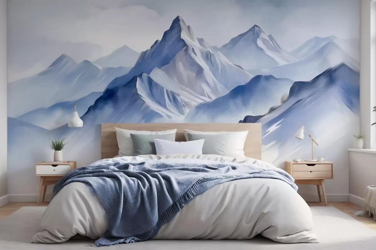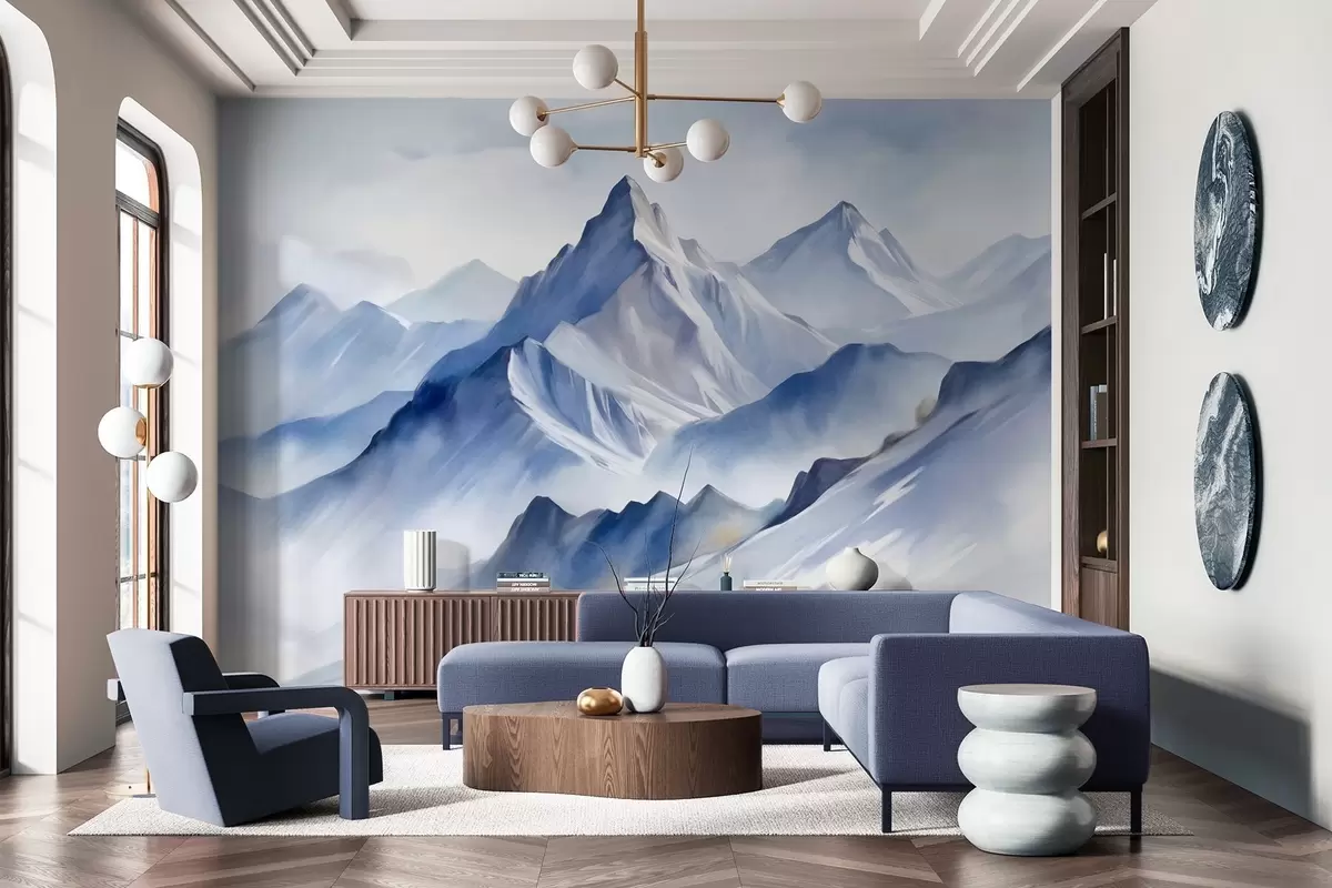 Fototapetai Tekstūruotos snieguotos kalvos su švelniu akvarelės efektu ir mėlynos bei baltos spalvų palete Nr. w09630