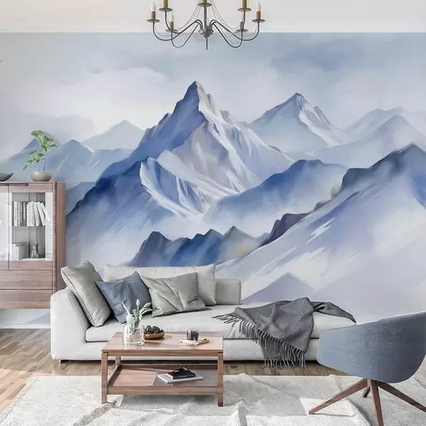 Fototapetai Tekstūruotos snieguotos kalvos su švelniu akvarelės efektu ir mėlynos bei baltos spalvų palete Nr. w09630