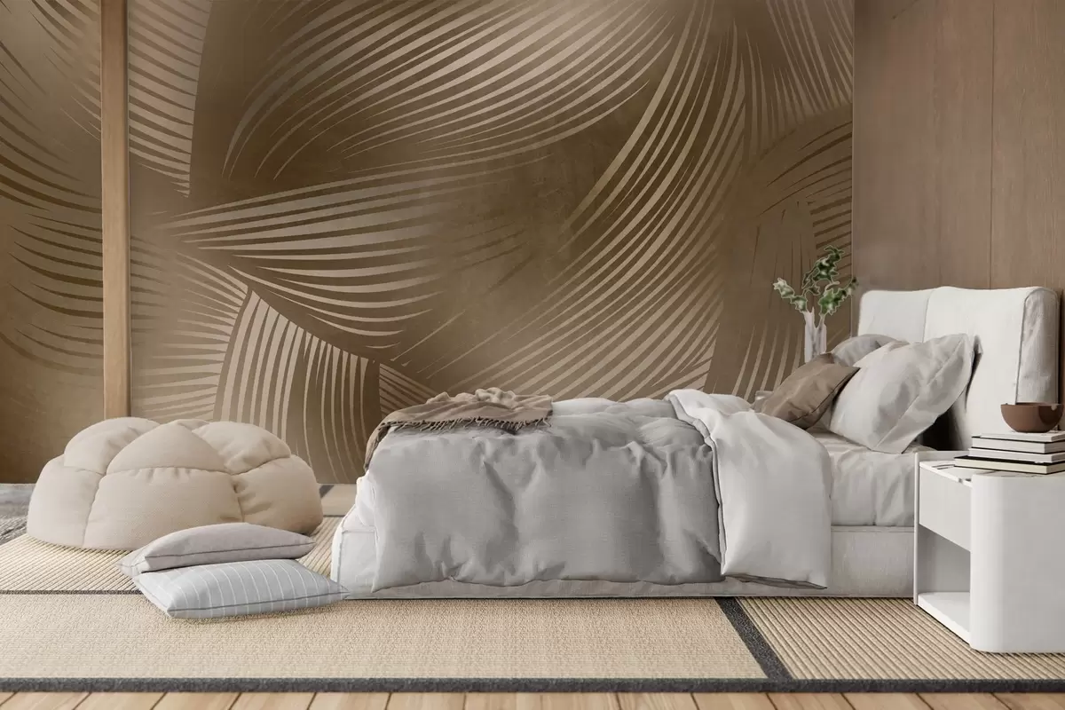 Fototapetai Abstraktus raštas iš tekančių, išlenktų linijų tamsiai rudos spalvos atspalviais, sukuriantis tekstūrą, modernų meną. Nr. w09646