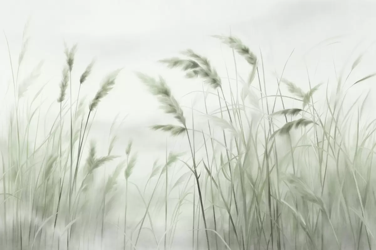 Fototapetai Aukšta, tekstūruota sausa žolė su kviečių varpomis lauke prieš švelnų, šviesų foną Nr. w09648v1