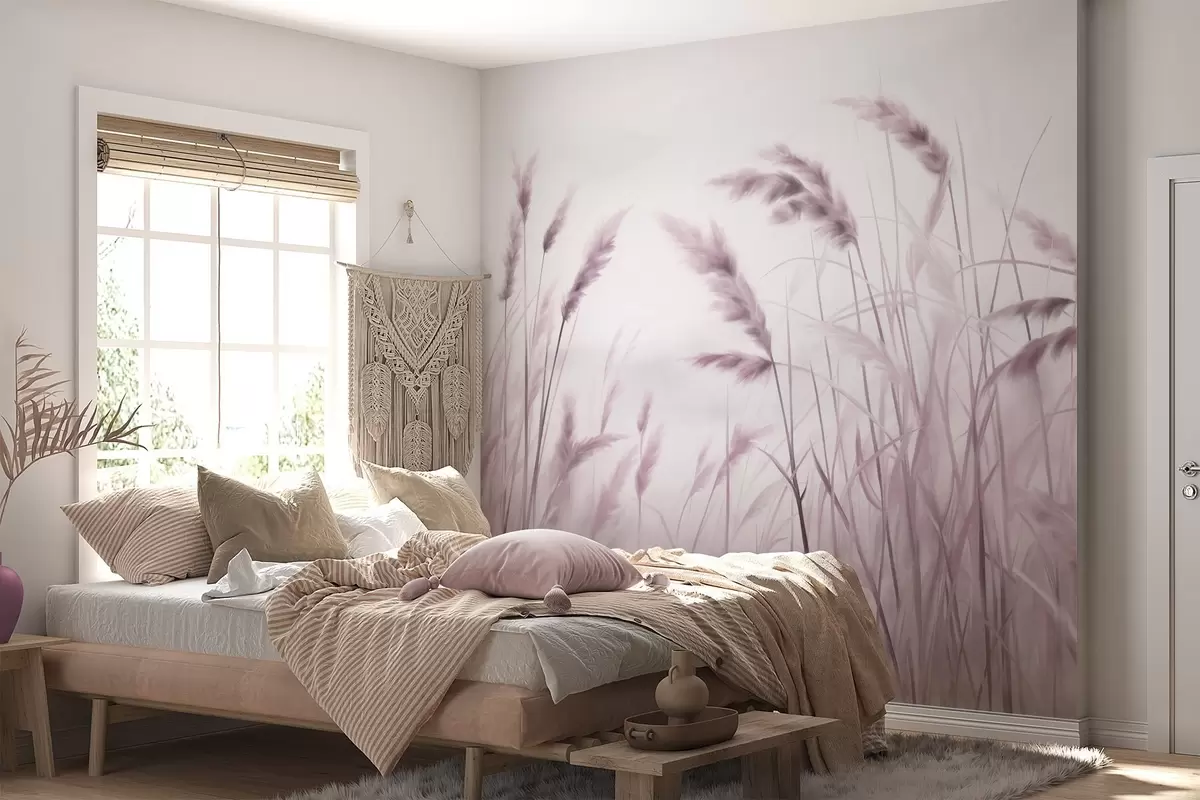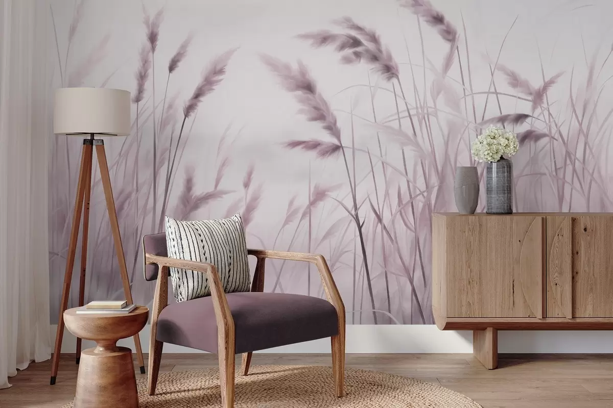Fototapetai Aukšta, tekstūruota sausa žolė su kviečių varpomis lauke prieš švelnų, šviesų foną Nr. w09648v2