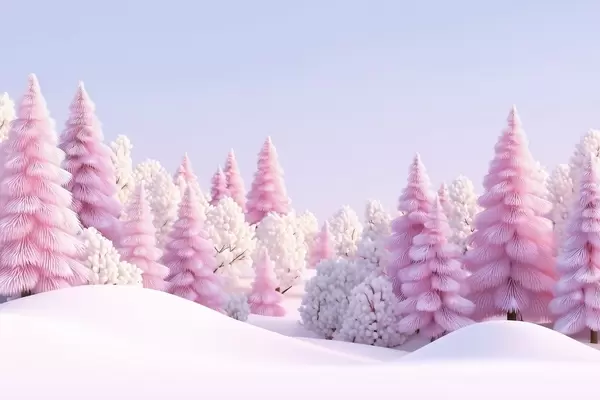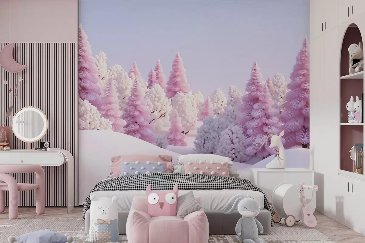 Fototapetai Snieguotas žiemos miškas rausvų atspalvių Nr. w09654