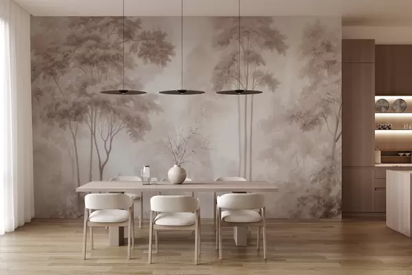 Fototapetai Abstraktus miško peizažas dūminių smėlio atspalvių, su gylio pojūčiu Nr. w09657