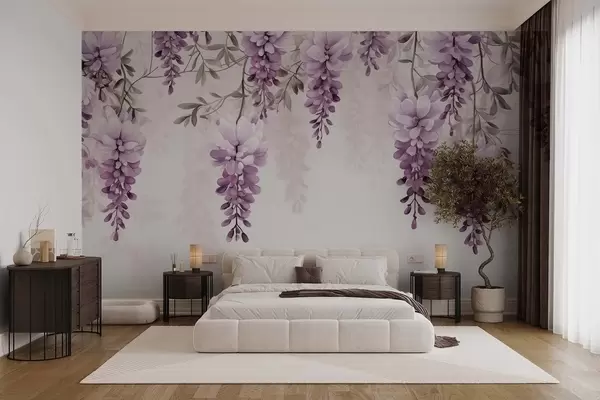 Fototapetai Subtilūs, dideli levandų šakos, kabantys ant sienos, imituojantys akvarelę Nr. w09690