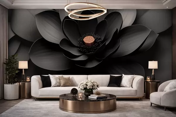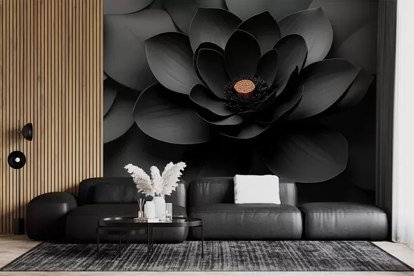 Fototapetai Minimalistinė juoda gėlė su žiedlapiais ir kontrastinga šilta vidurine dalimi Nr. w09721