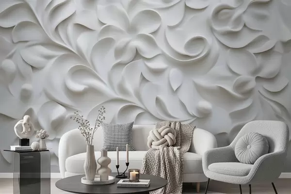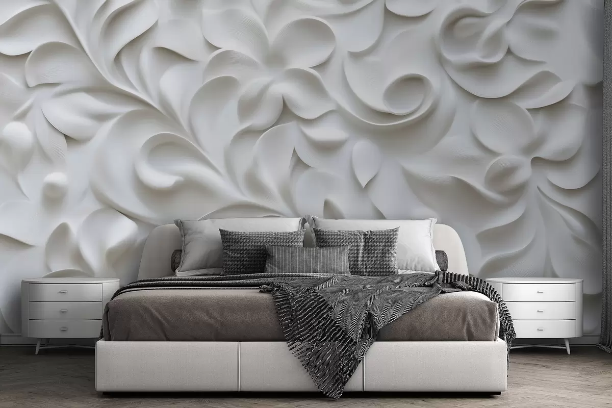 Fototapetai Pilkos spalvos matmeninis gėlių ornamentas Nr. w09727