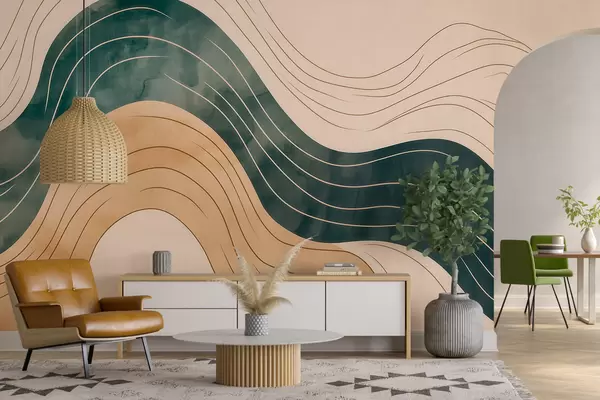 Fototapetai Abstrakčios banguotos linijos natūralaus smėlio ir smaragdo atspalvių Nr. w09732