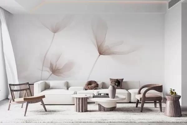 Fototapetai Oro spalvos smėlio spalvos gėlės minimalistiniu šviesiu stiliumi w09734