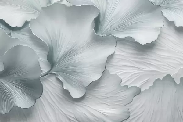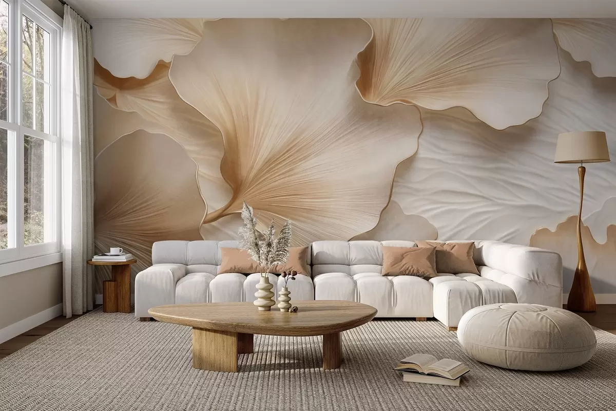 Fototapetai Tekstūruoti, smėlio spalvos ir balti ginkgo lapų žiedlapiai su subtiliais organiniais raštais Nr. w09741
