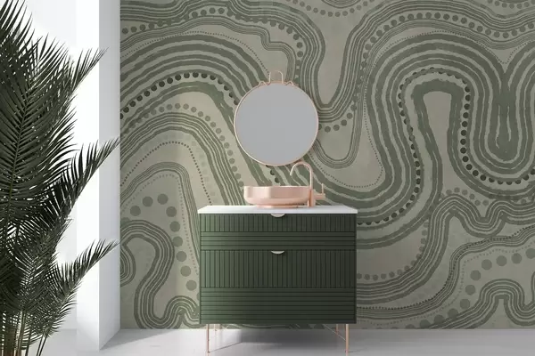 Fototapetai Abstrakčios žalios ir smėlio spalvos banguotos linijos ir taškai, modernus tekstūruotas menas Nr. w09747