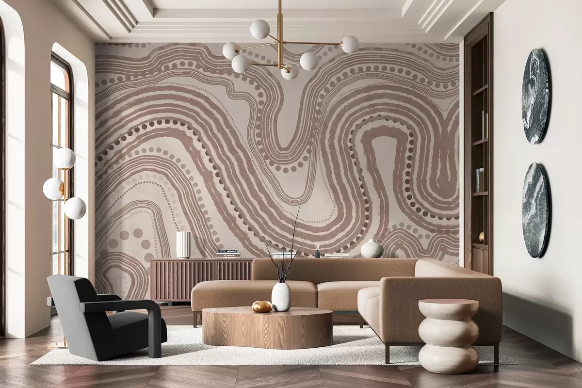 Fototapetai Abstrakčios rudos ir smėlio spalvos banguotos linijos ir taškai, modernus tekstūruotas menas Nr. w09747v1