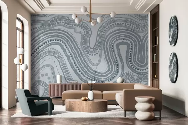 Fototapetai Abstrakčios mėlynos banguotos linijos ir taškai, modernus tekstūrinis menas Nr. w09747v3