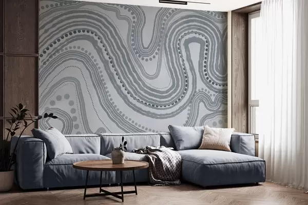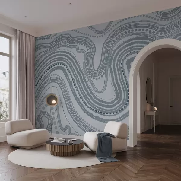 Fototapetai Abstrakčios mėlynos banguotos linijos ir taškai, modernus tekstūrinis menas Nr. w09747v3