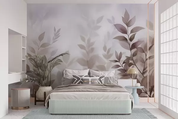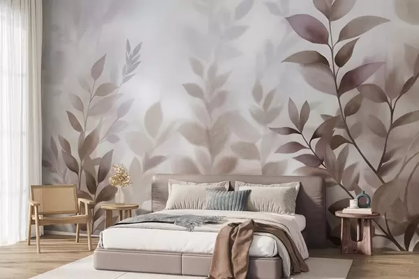 Fototapetai Subtilūs šakeliukai su prislopintais rudos ir smėlio spalvos lapais, akvarelės stiliaus tapyba, tekstūruotas menas Nr. w09750
