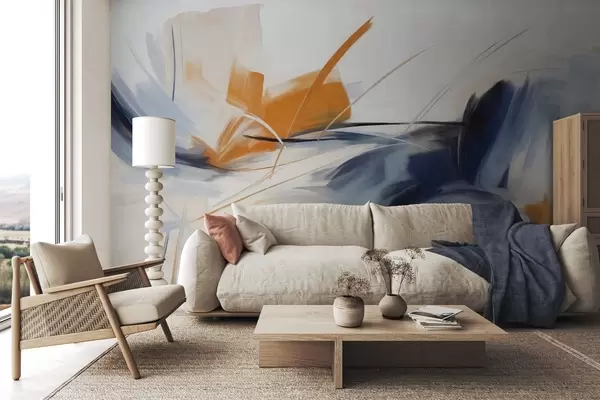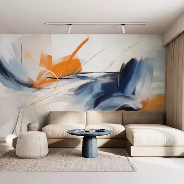 Fototapetai Abstraktus tapybos stilius su oranžiniais ir mėlynais tekstūriniais potėpiais Nr. w09755