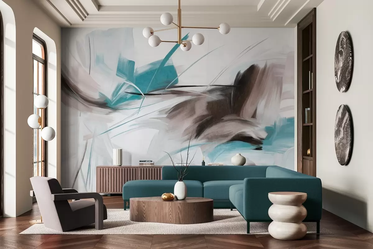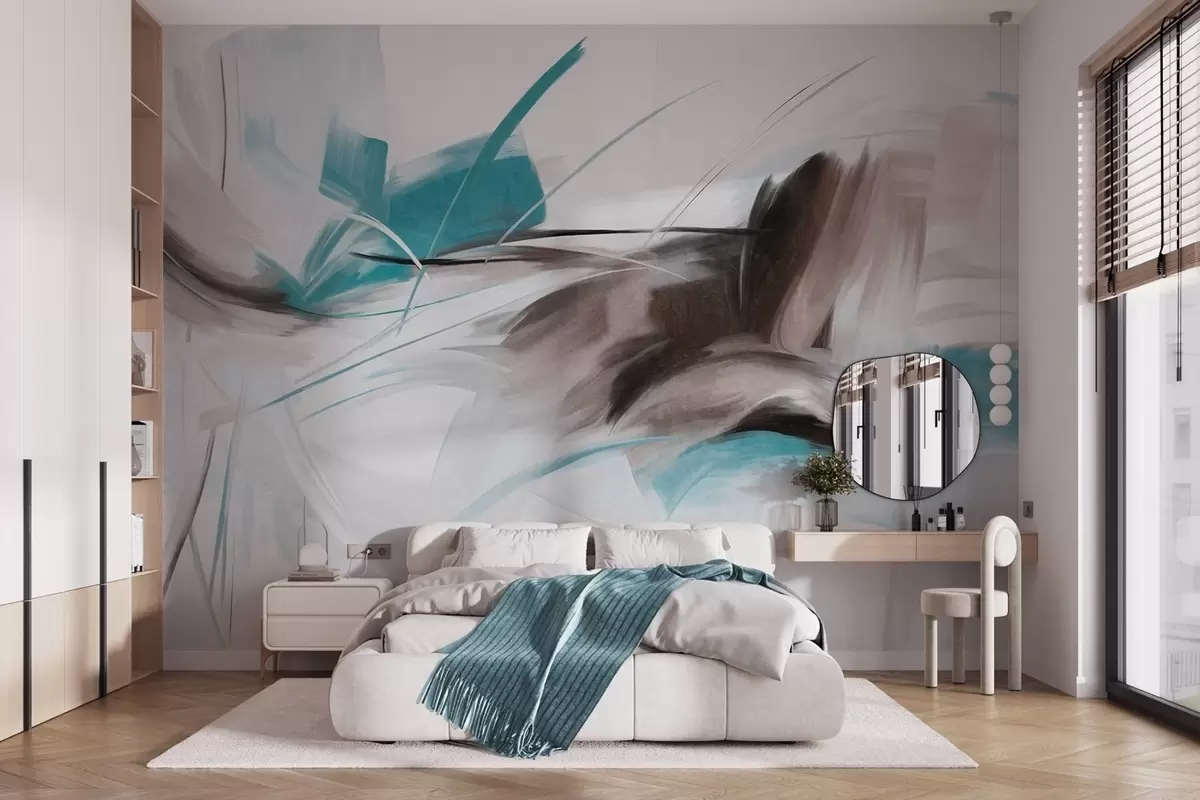 Fototapetai Abstraktus tapybos stilius su rudos ir mėlynos spalvos tekstūriniais potėpiais Nr. w09755v1