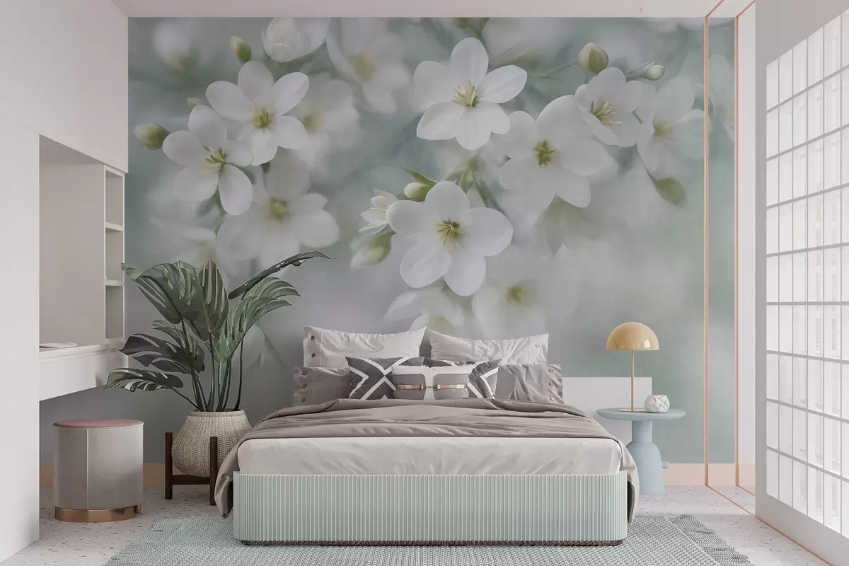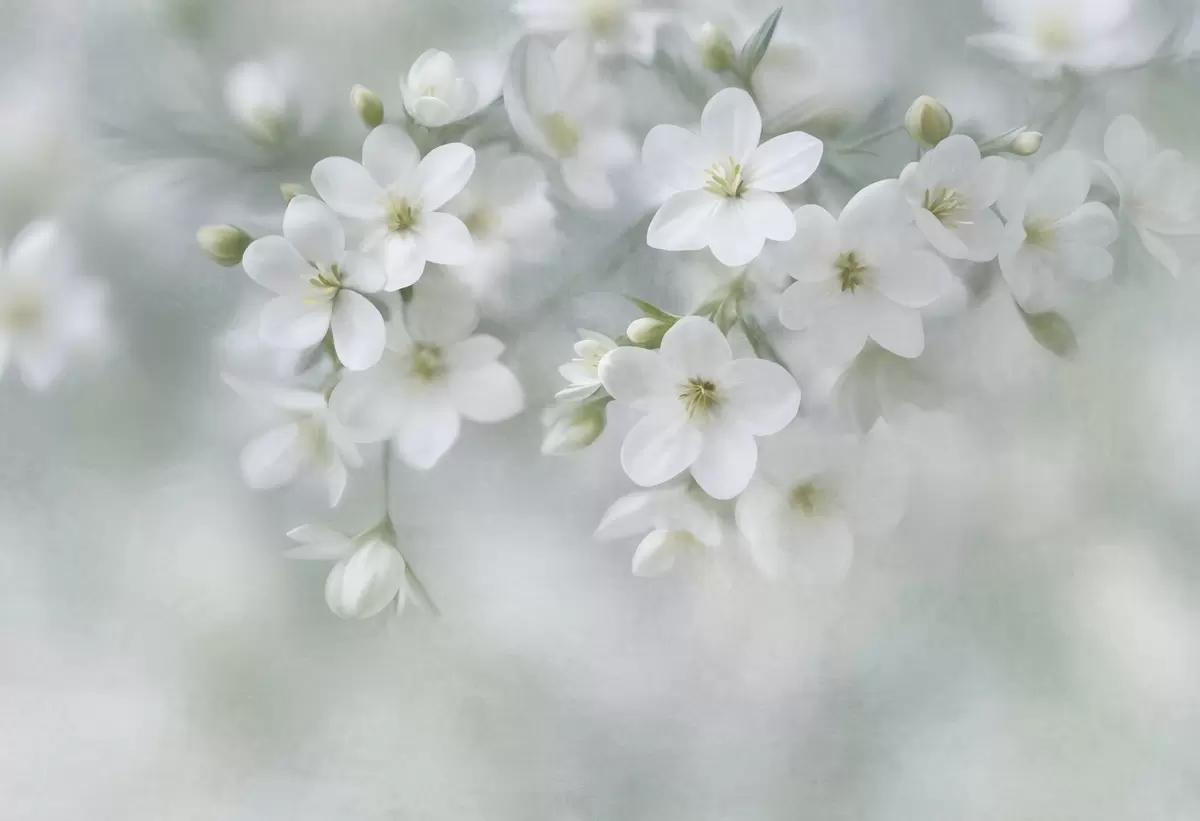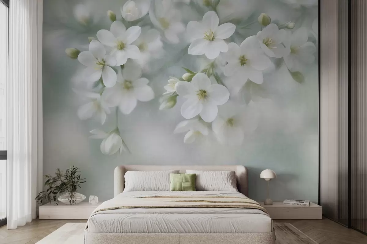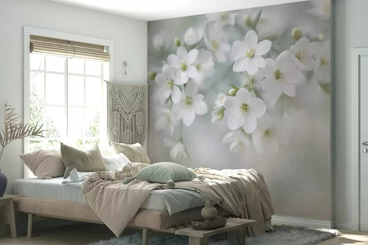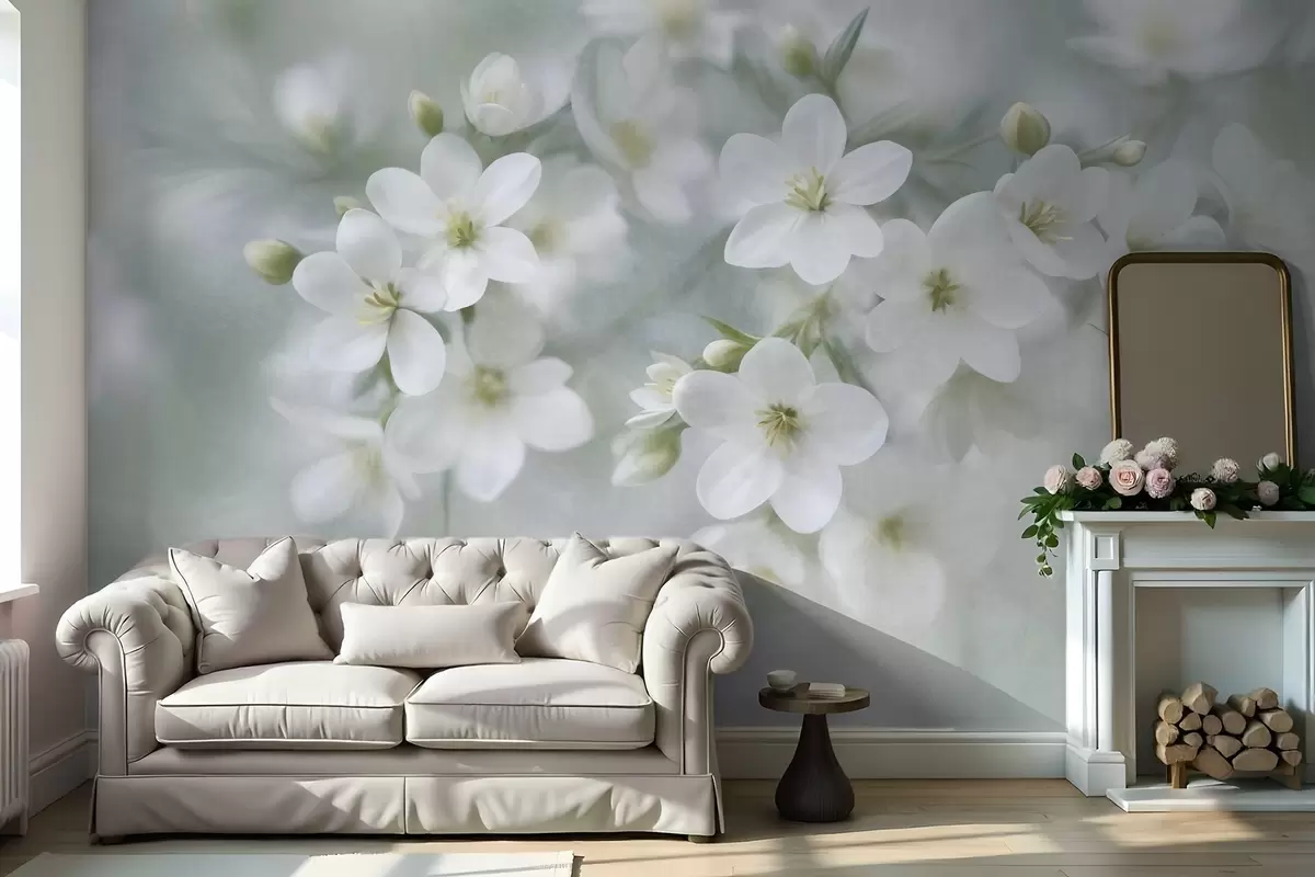 Fototapetai Subtilios tekstūros baltos gėlės, švelniai išsiliejusios fone Nr. w09759