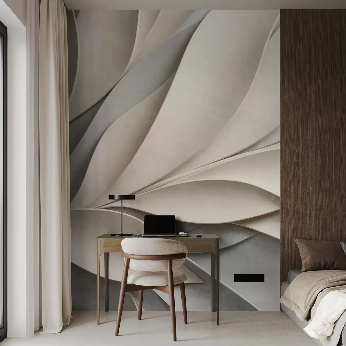 Fototapetai Abstrakčios smėlio ir pilkos spalvos lapai, tekstūruotas modernus menas Nr. w09769