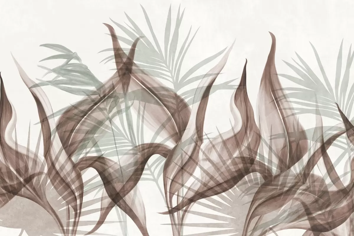 Fototapetai Tropiniai lapai rudų ir žalių atspalvių ant balto fono, tekstūruotas akvarelės stilius Nr. w09772