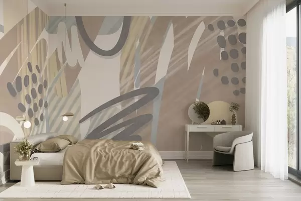 Fototapetai Abstraktus tekstūrinis raštas su organiškų formų elementais, rašteliais ir taškeliais, atliktas švelniomis pastelinėmis spalvomis Nr. w09774