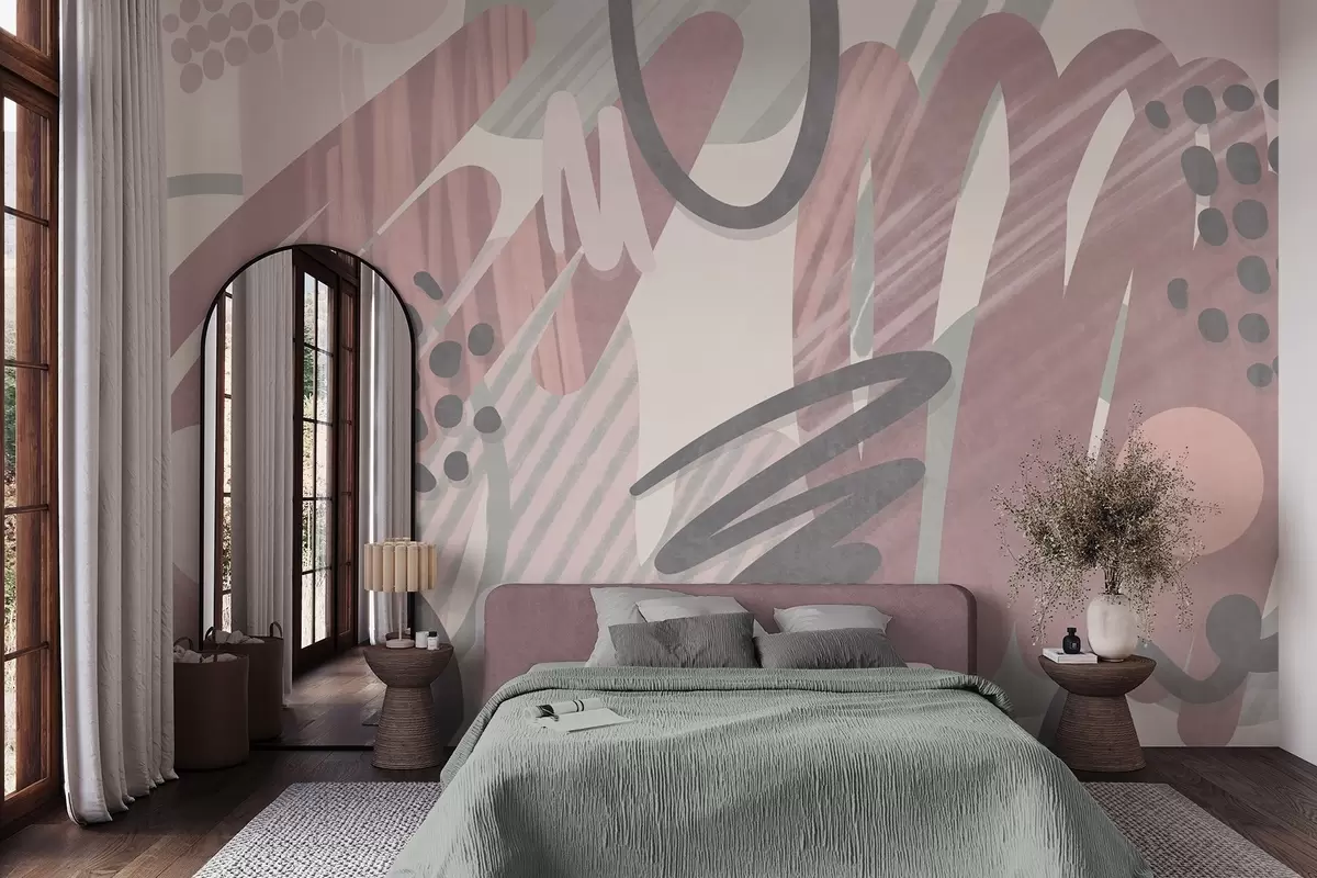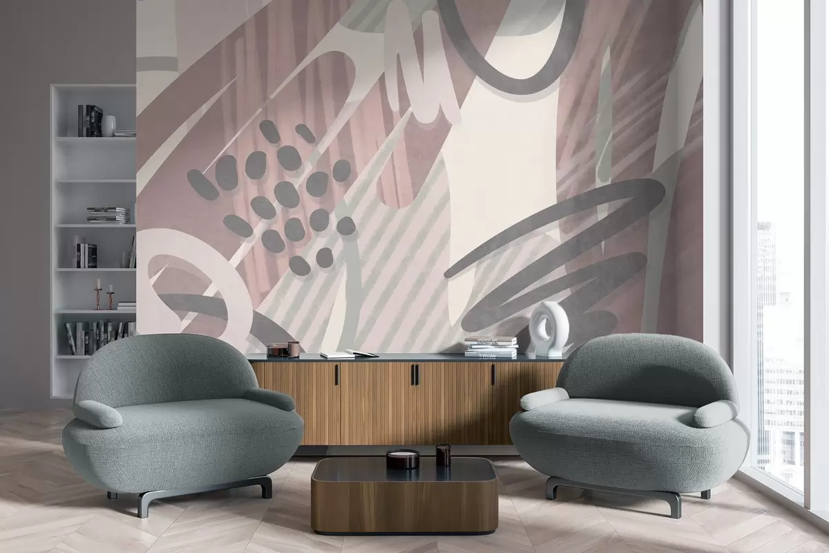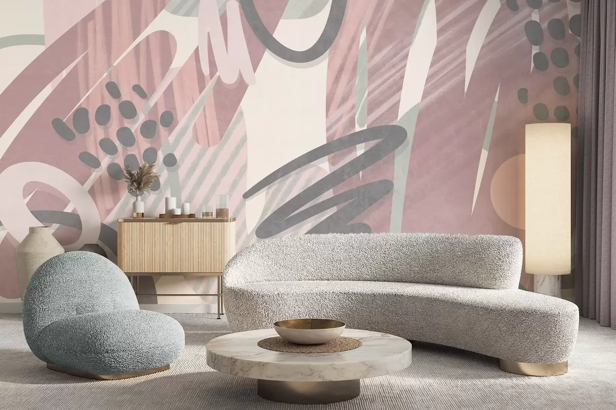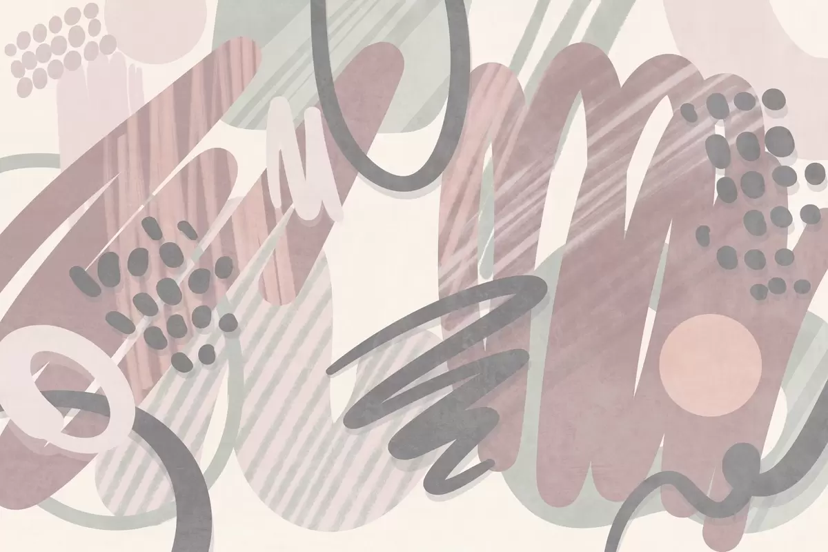 Fototapetai Abstraktus tekstūrinis raštas su organiškų formų elementais, rašteliais ir taškeliais, atliktas švelniomis pastelinėmis spalvomis Nr. w09774v1