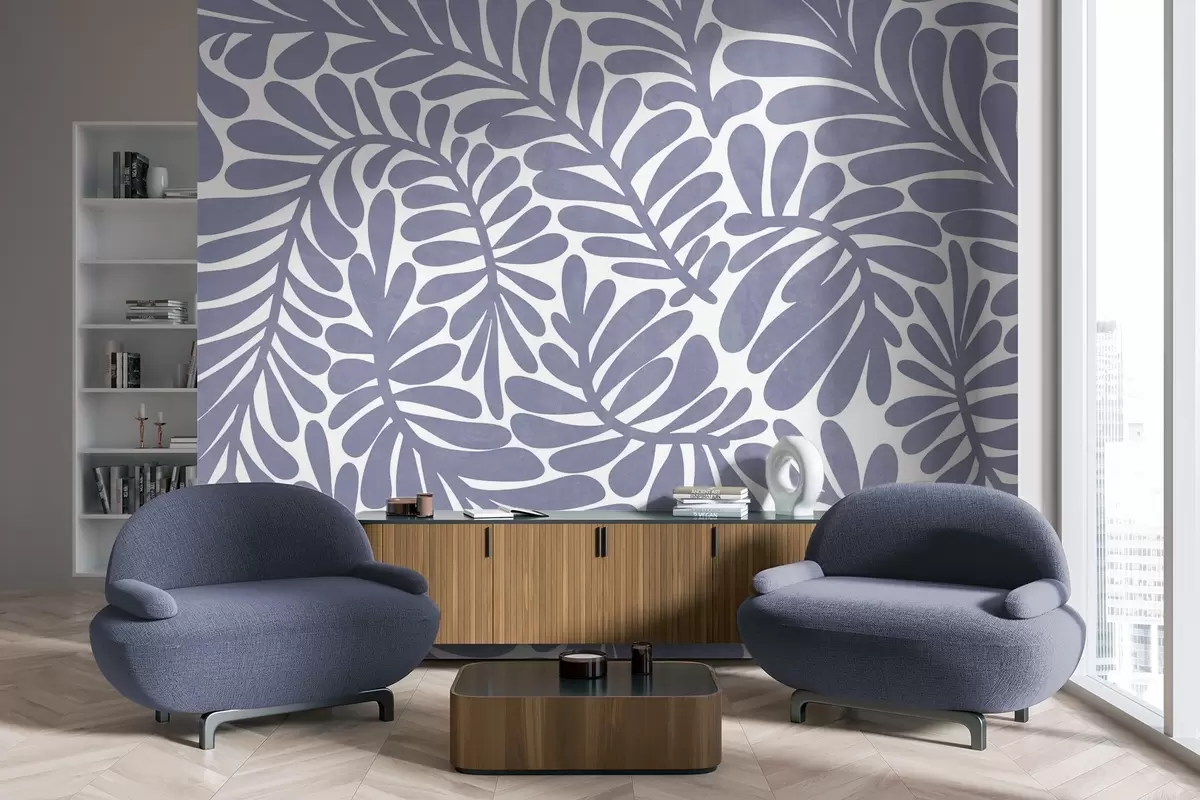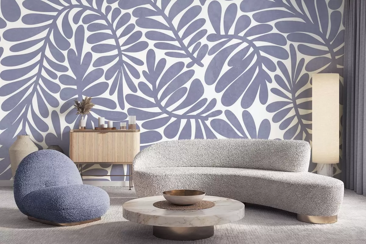 Fototapetai Stilizuoti šviesiai mėlyni lapai šviesaus fono fone, tekstūrinis meno kūrinys Nr. w09775v1