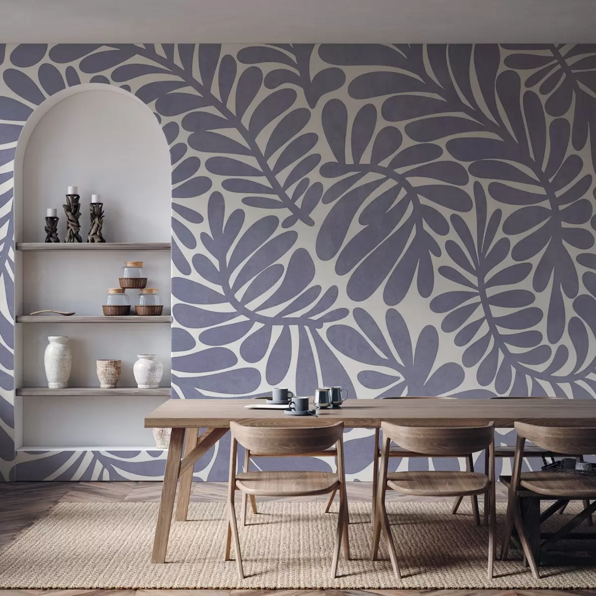 Fototapetai Stilizuoti šviesiai mėlyni lapai šviesaus fono fone, tekstūrinis meno kūrinys Nr. w09775v1