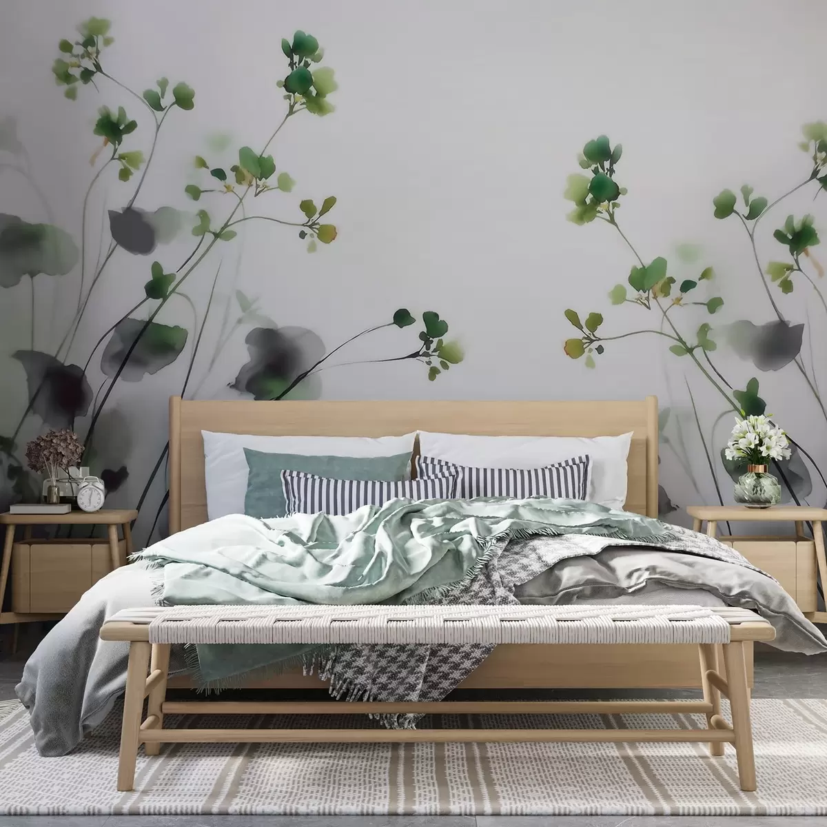 Fototapetai Subtilūs laukiniai žiedai ir žolė, nutapyti akvarele Nr. w09796