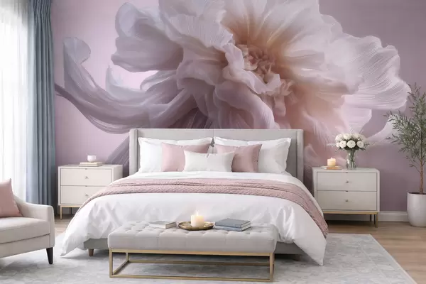Fototapetai Tūrinė šilkinė gėlė švelnių rožinių ir smėlio atspalvių w09809