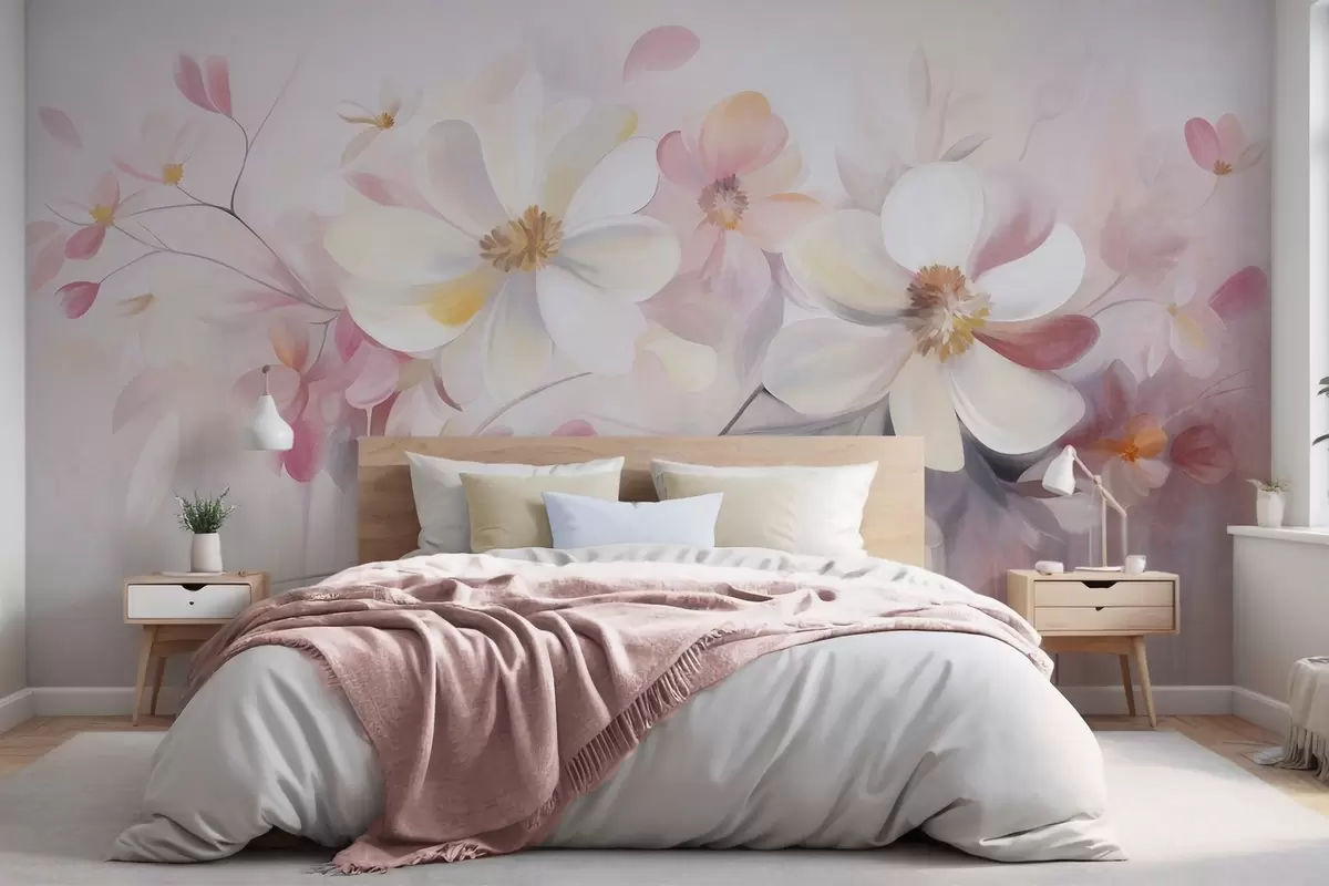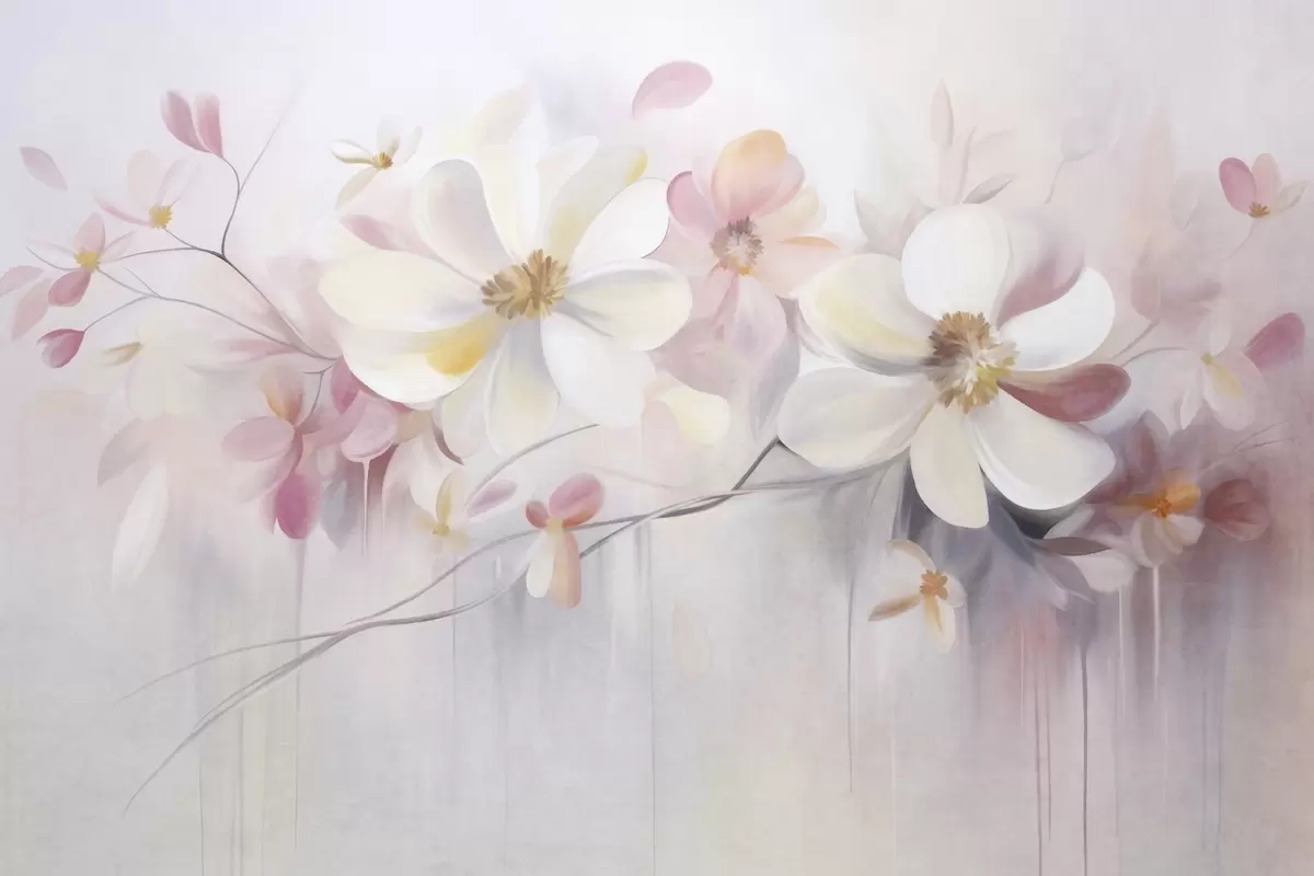 Fototapetai Baltai ir rausvi žiedai su subtiliais žiedlapiais, tekstūrinis menas, abstraktus, švelnus fonas Nr. w09811