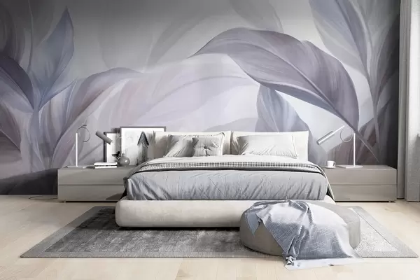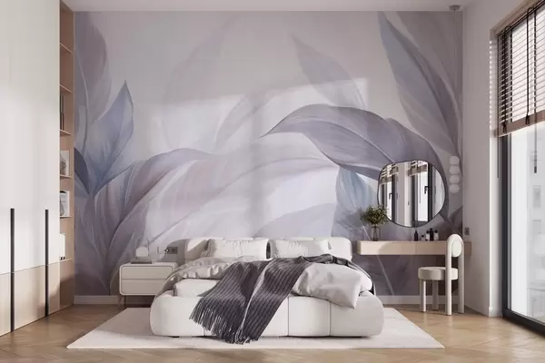 Fototapetai Didelės, šviesiai mėlynos ir violetinės spalvos tropinių augalų lapai, pasižymintys švelniomis, pastelinėmis spalvomis ir tekstūringa kompozicija Nr. w09816v1