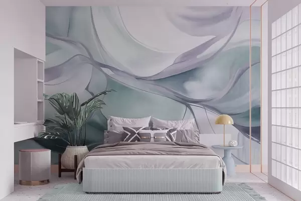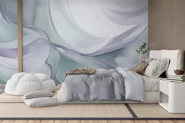 Fototapetai Abstrakčios tekstūruotos, banguojančios formos mėlynų ir pilkų atspalvių su subtiliais kontūrais Nr. w09818v1