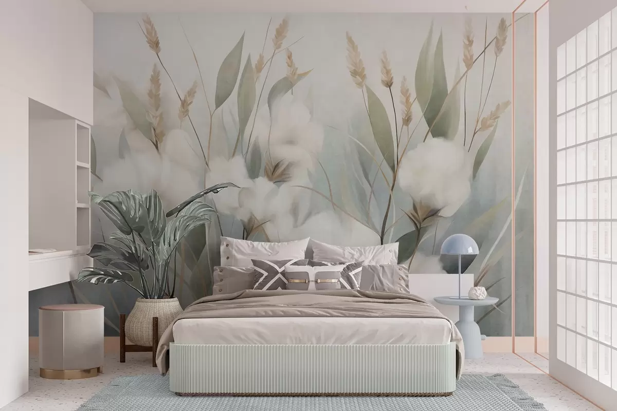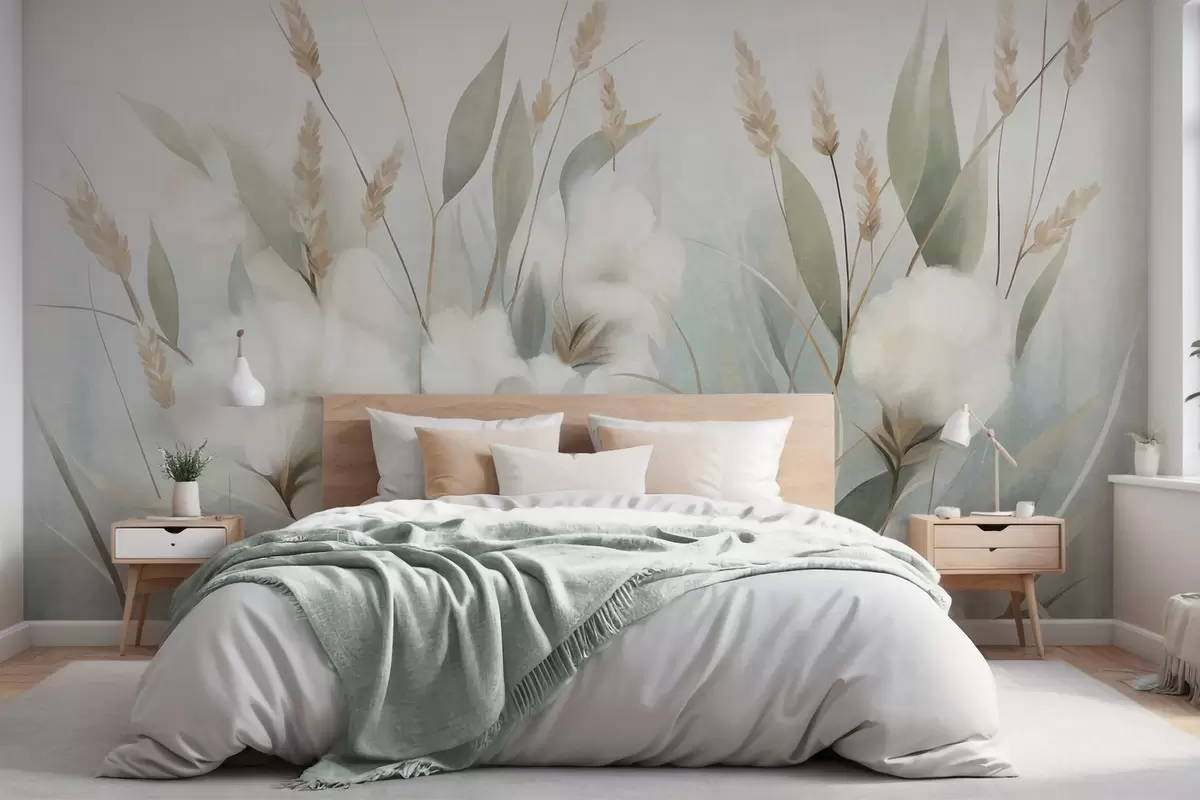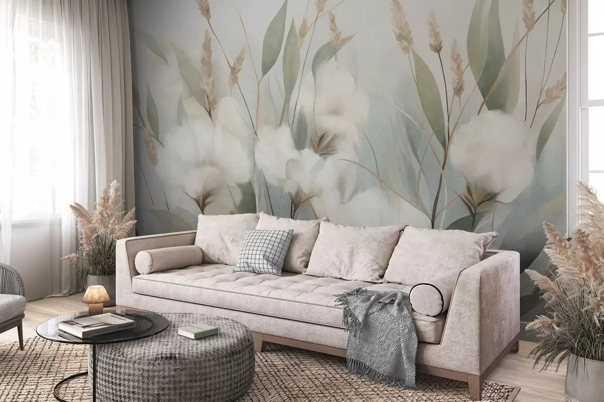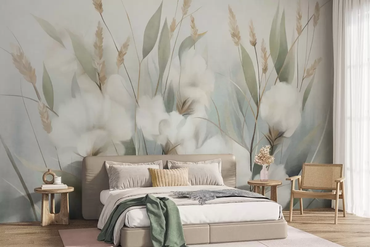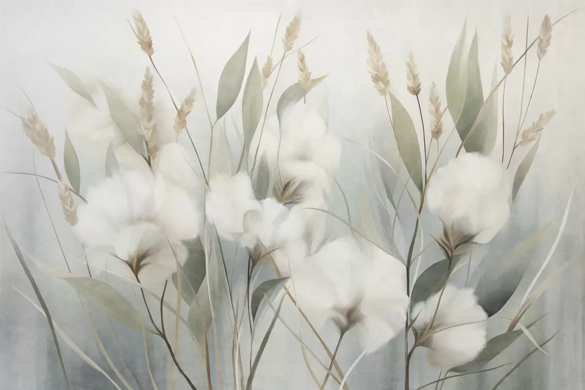 Fototapetai Baltai išdžiovintos gėlės ir aukšta žolė prieš švelnų, prislopintą foną, nutapyta impresionistiniu stiliumi Nr. w09823
