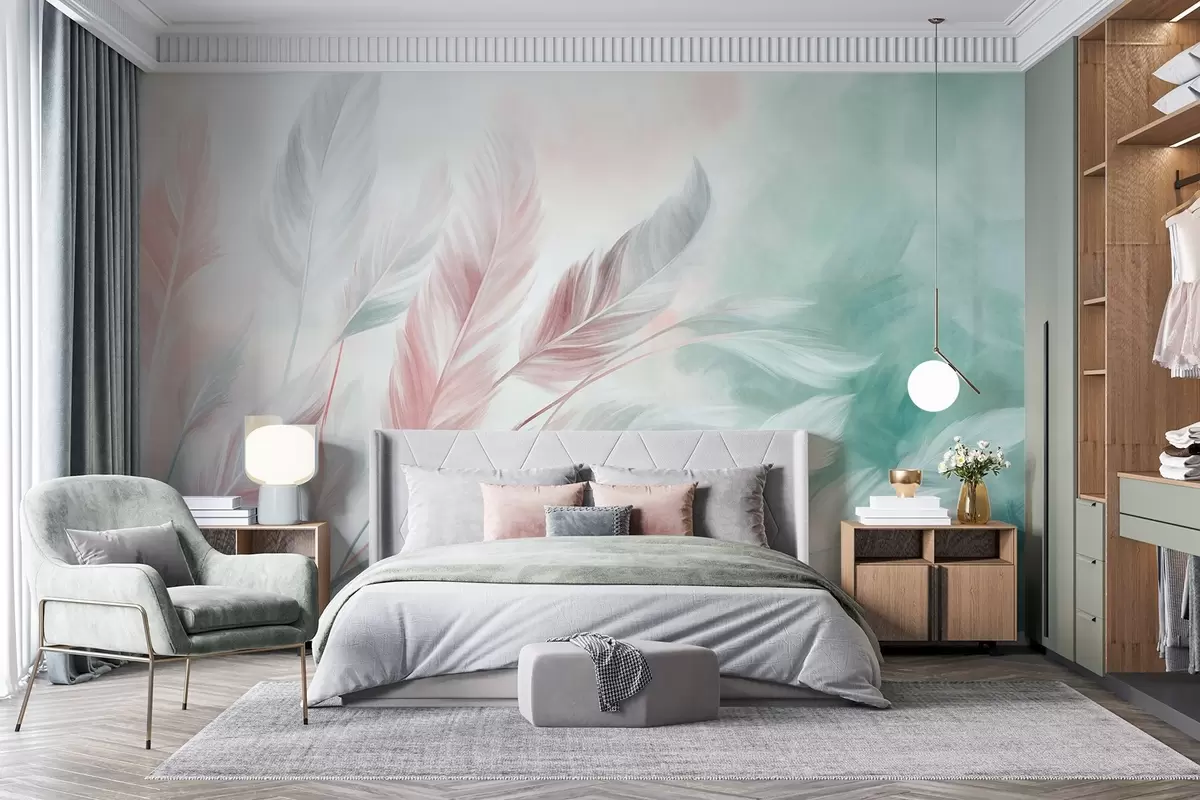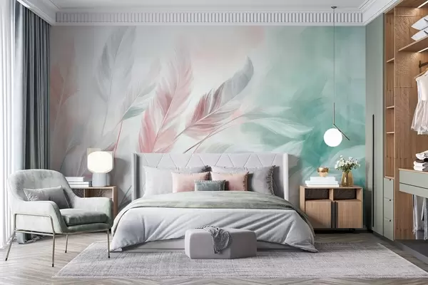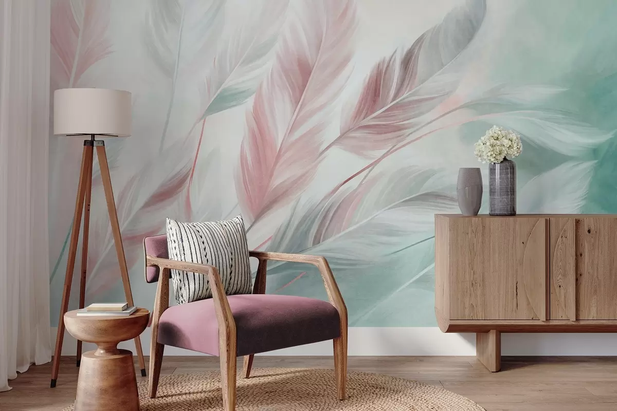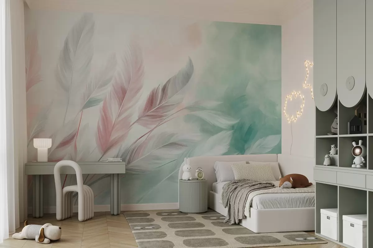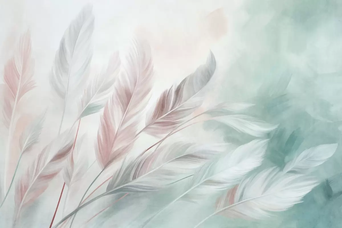 Fototapetai Tekstūruotos pastelinės plunksnos su švelniais, plonais kraštais, akvarelės stiliaus fone Nr. w09833v1