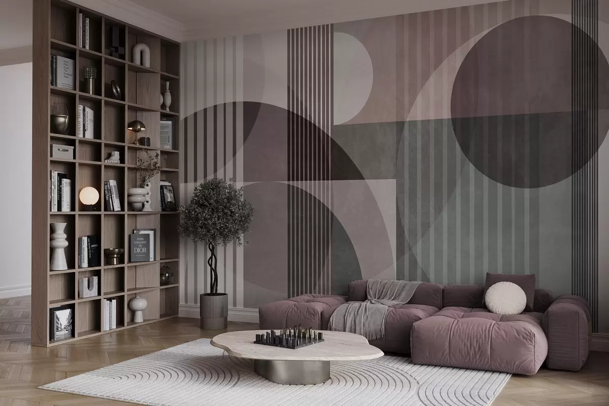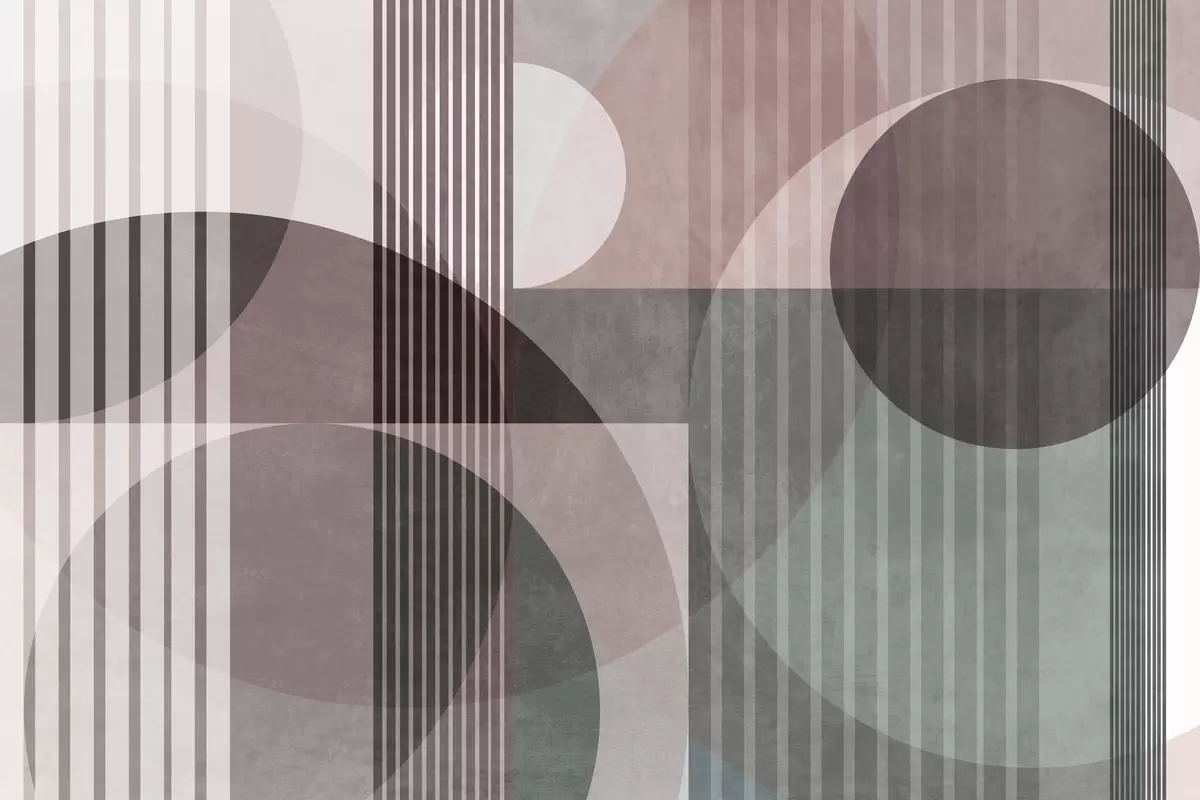 Fototapetai Abstrakčios geometrinės figūros su apskritimais ir linijomis, prislopinti atspalviai, tekstūruota, sluoksniuota kompozicija Nr. w09834v1