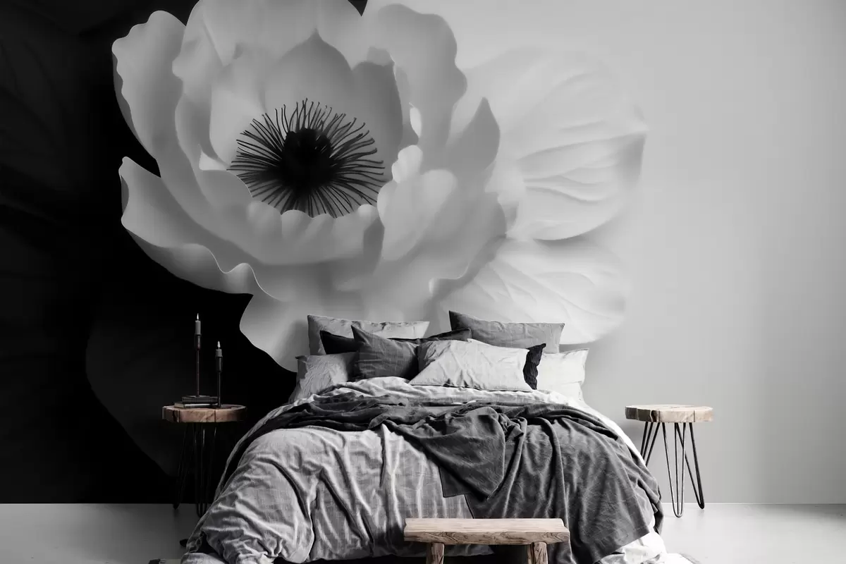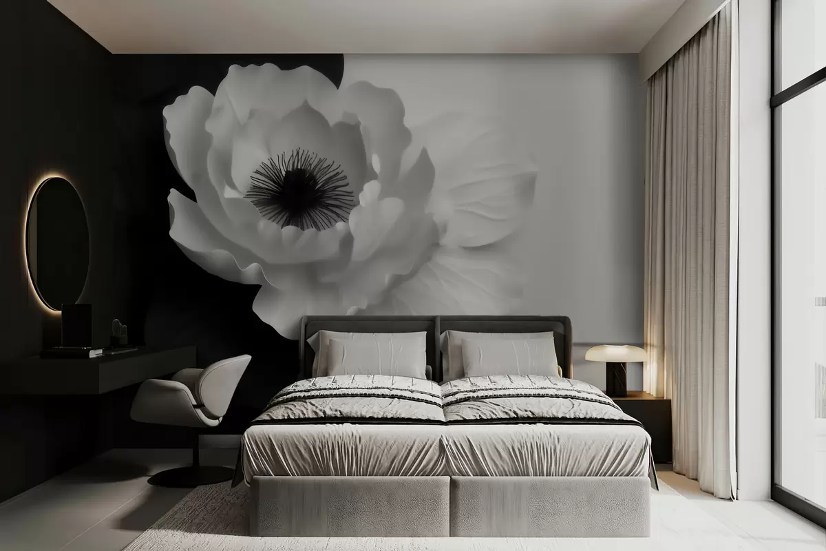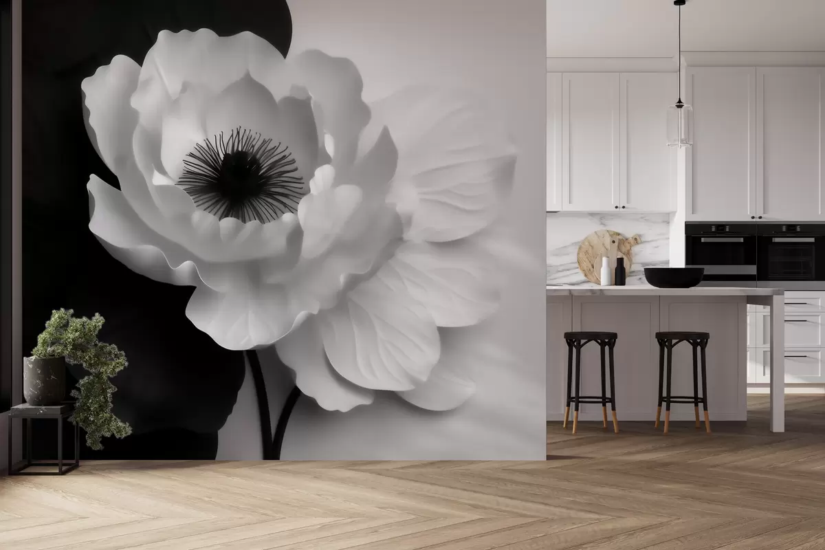 Fototapetai Kontrastinga balta gėlė su tamsiu viduriu ant juodai balto fono Nr. w09852