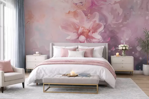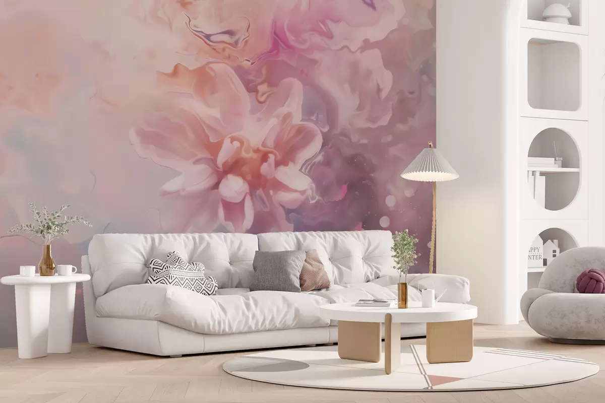 Fototapetai Abstrakti kompozicija su gėle ir švelniai rausvais potėpiais akvarelės stiliumi Nr. w09859