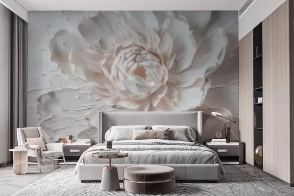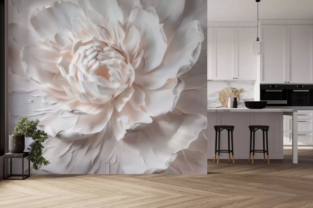Fototapetai Subtilus gėlių bareljefas su lygiomis šviesių atspalvių žiedlapių Nr. w09861