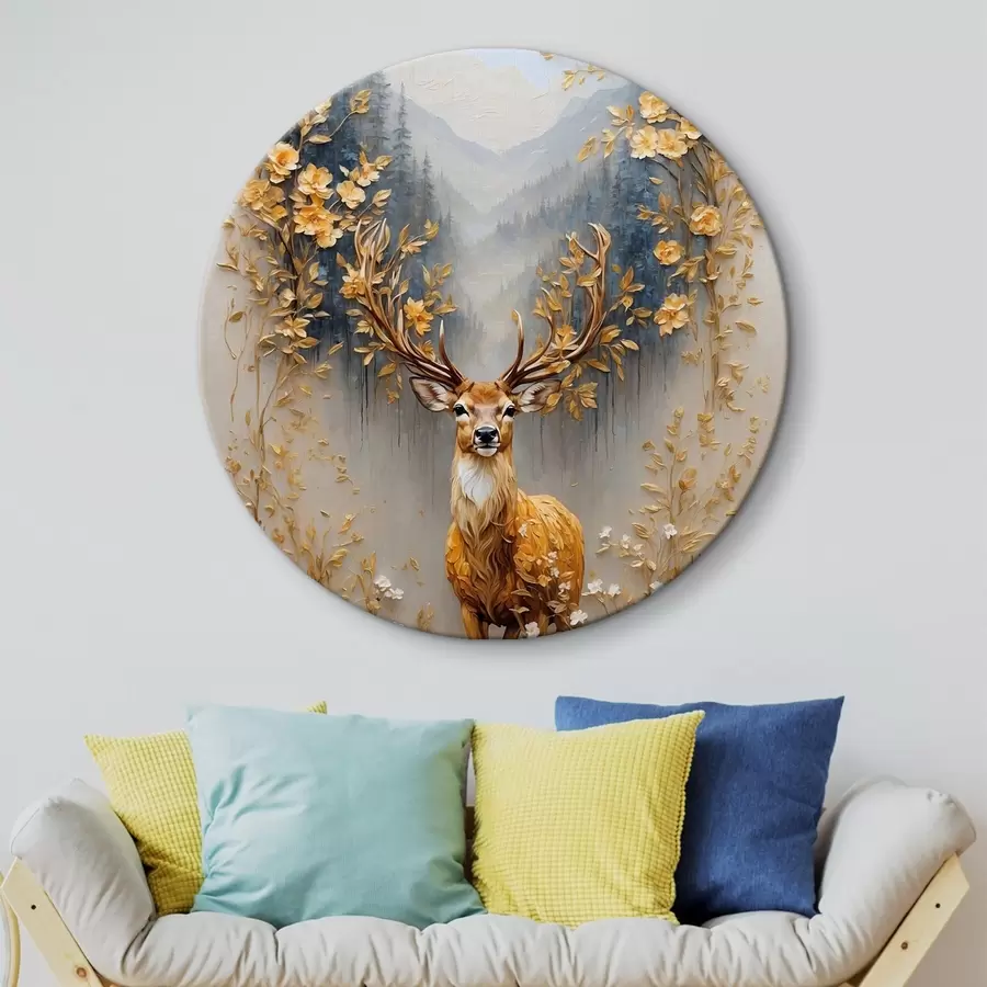 Abstrakčios geometrinės formos mėlynais, oranžiniais ir rudais atspalviais sukuria modernią, minimalistinę kompoziciją.