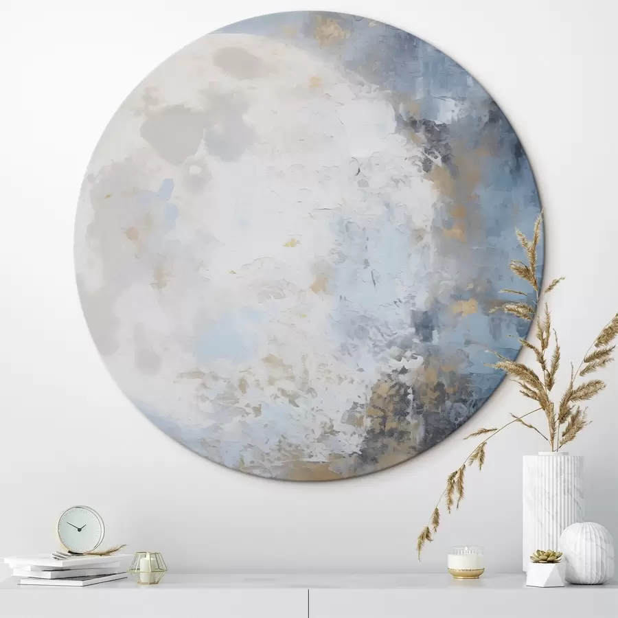 Abstraktaus tapybos imitacija mėlyna, pilka ir balta spalvomis, vertikaliomis linijomis ir geometrinėmis formomis