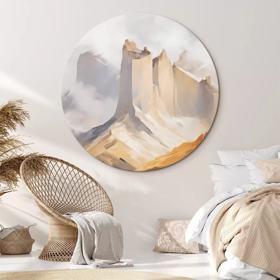 Snieguotos kalnų viršūnės su pilkomis šešėlėmis, pilkas dangus, teptuko potėpiai, tekstūruotas, minimalistinis