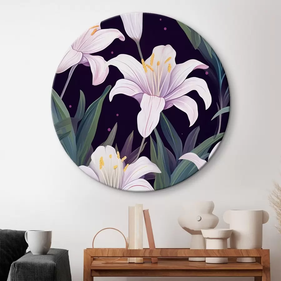 Švelnios lelijos tamsiame fone su žaliais lapais