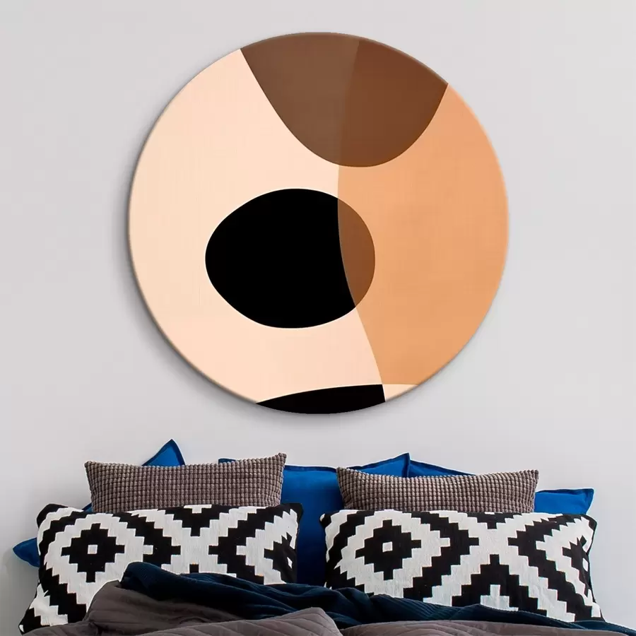 Reljefiniai apskritimai ir šaka šiltų neutralių atspalvių