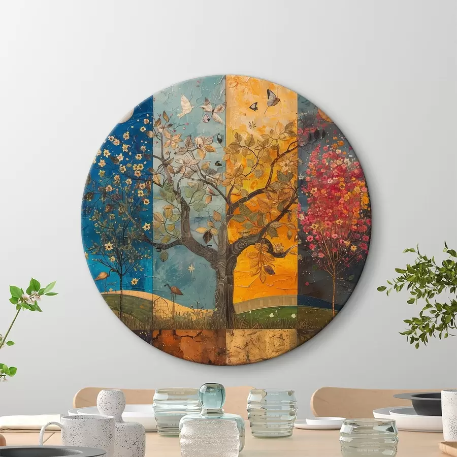 Medis su vaivorykštės spalvos šakomis ant žalios fono