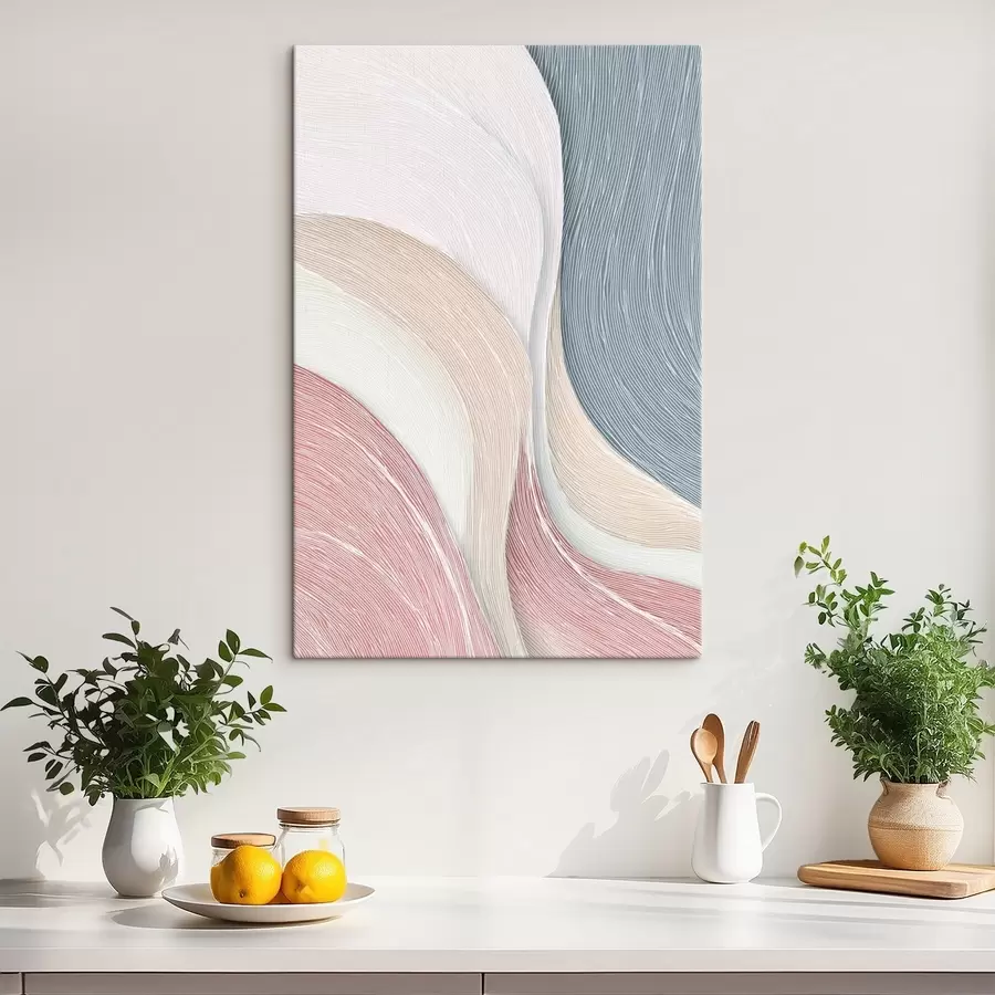 Abstrakčios bangos rausvai-smėlio-mėlynos spalvų tonais