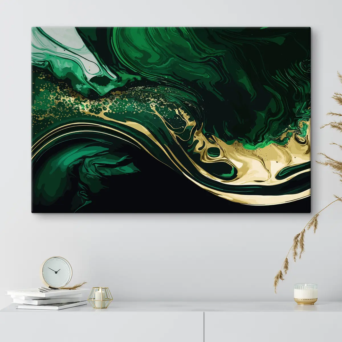 Paveikslas Žalias akvarelinis fonas su blizgiais gysleliais Nr s35444